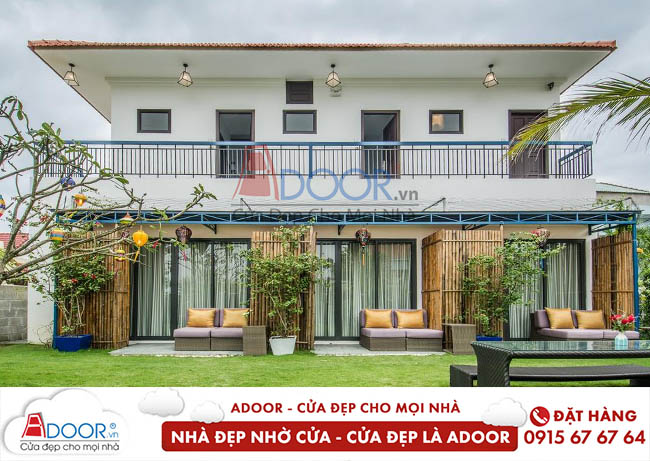 Cửa nhôm Adoor sử dụng làm cửa đi mặt tiền mang đến sự sang trọng cho không gian sống, mang ý nghĩa nghênh đón tài lộc vào nhà.